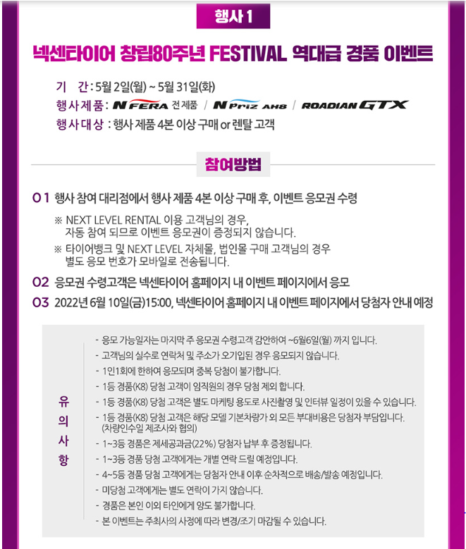 *이글을 쓰는 5월 25일 현재 넥센타이어 홈페이지에서 이벤트도 진행중입니다.